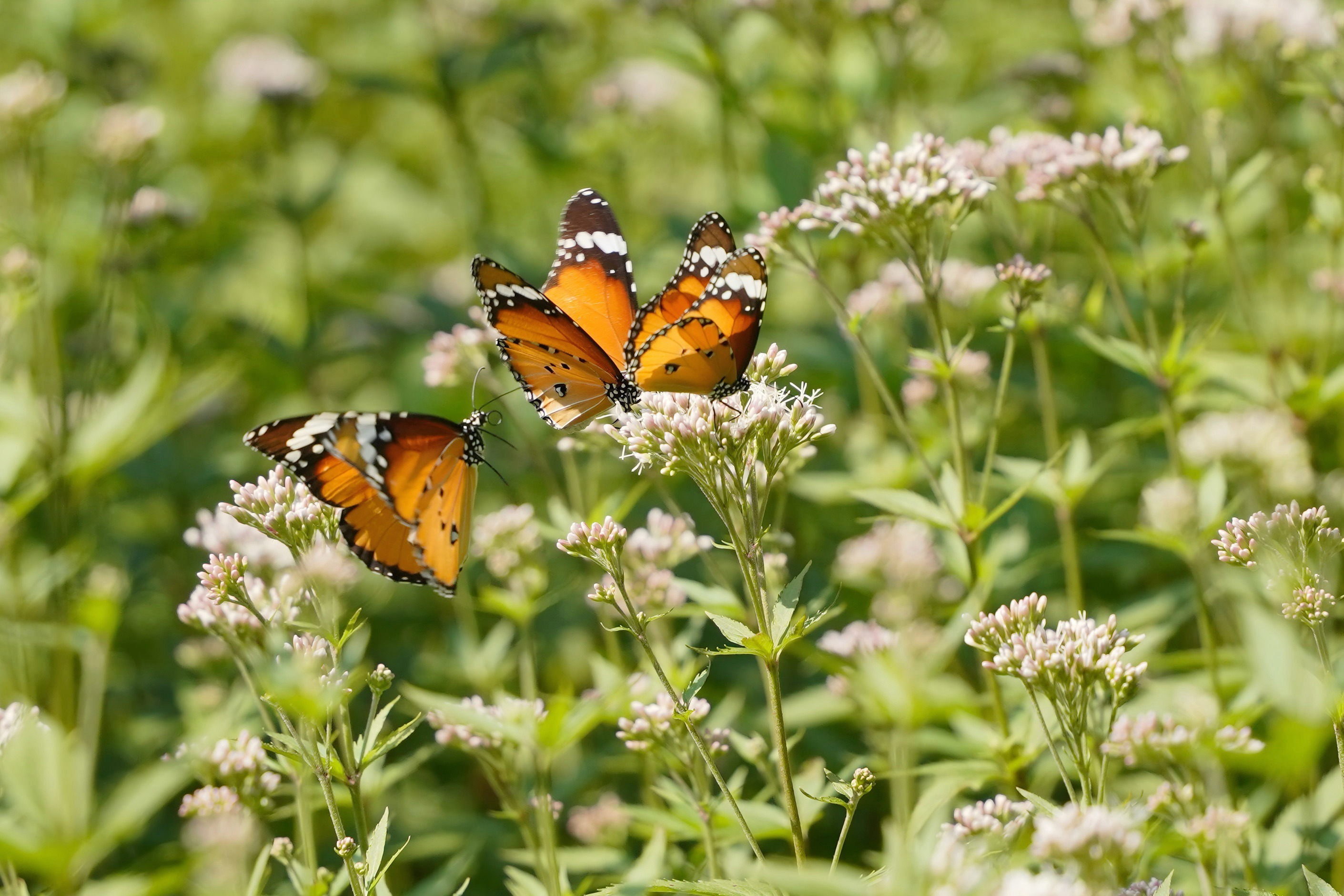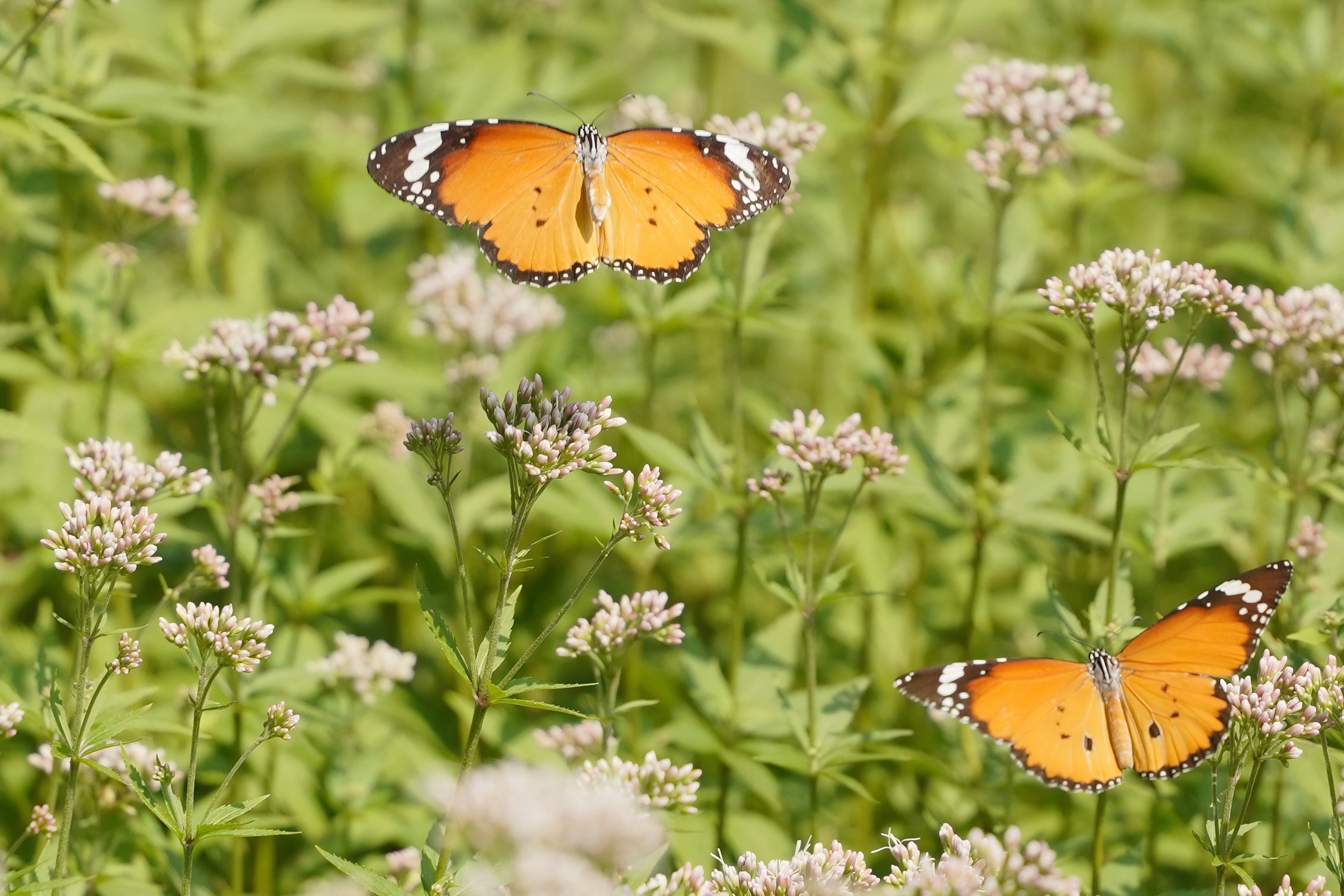 其中,佩兰、龙船花、假杜鹃等开花植物都是蝴蝶的“蜜源补给站”,能为成年蝴蝶、蜜蜂等传粉昆虫提供持续花蜜;柠檬、柑橘、马利筋等则是“幼虫育儿所”,专门为蝴蝶幼虫提供栖息场所与食物。